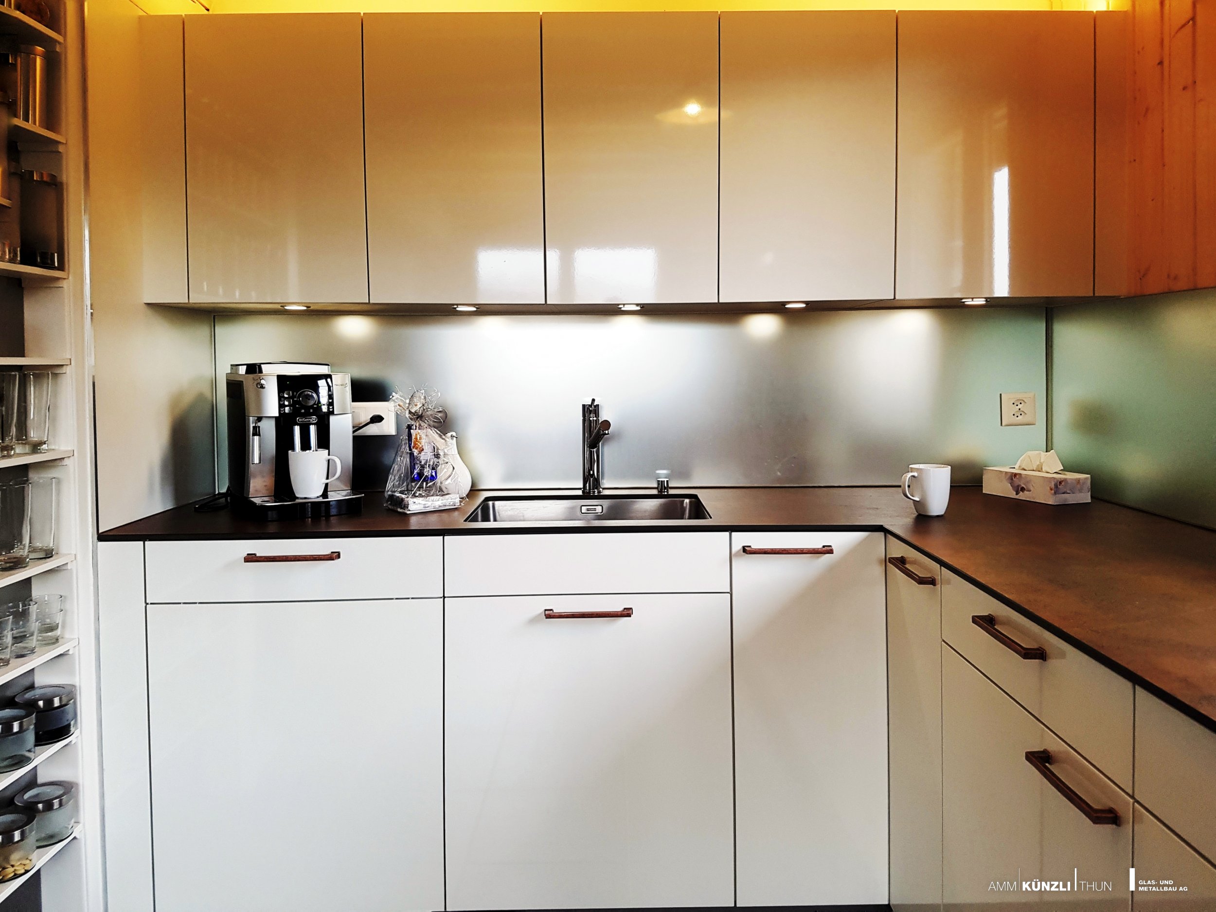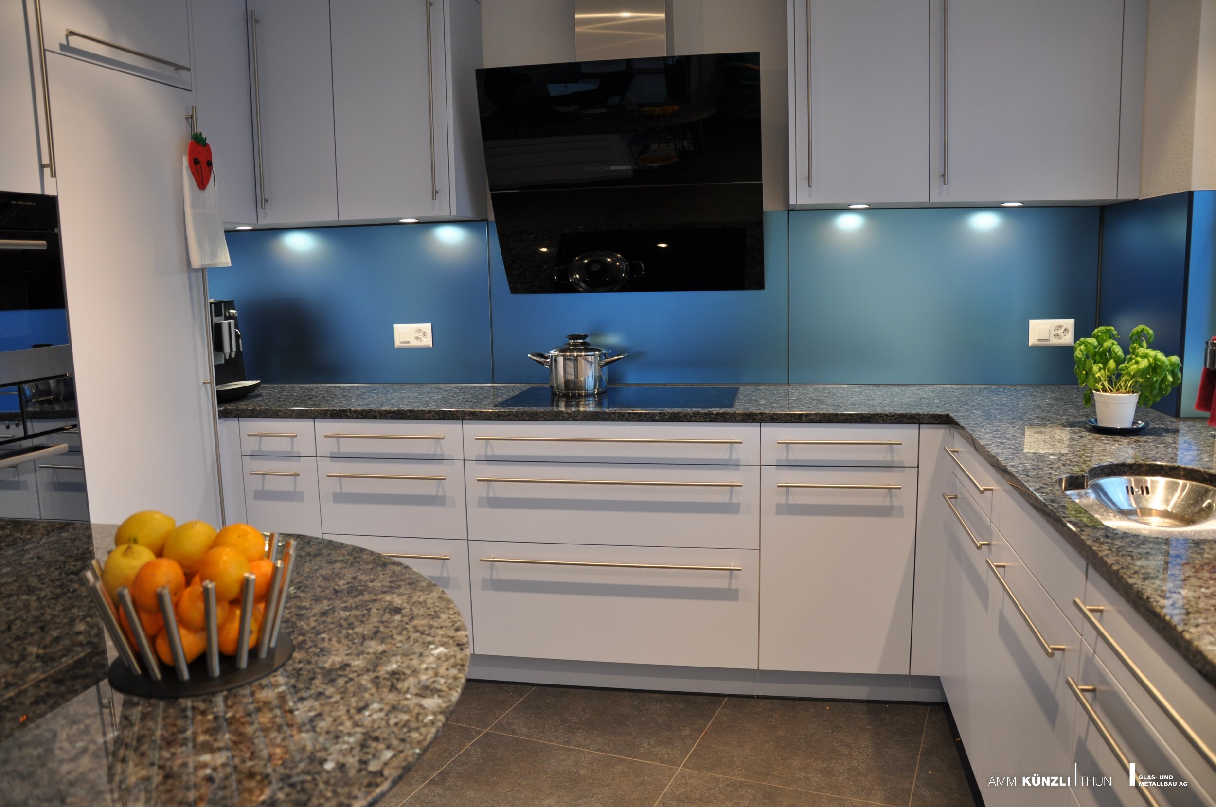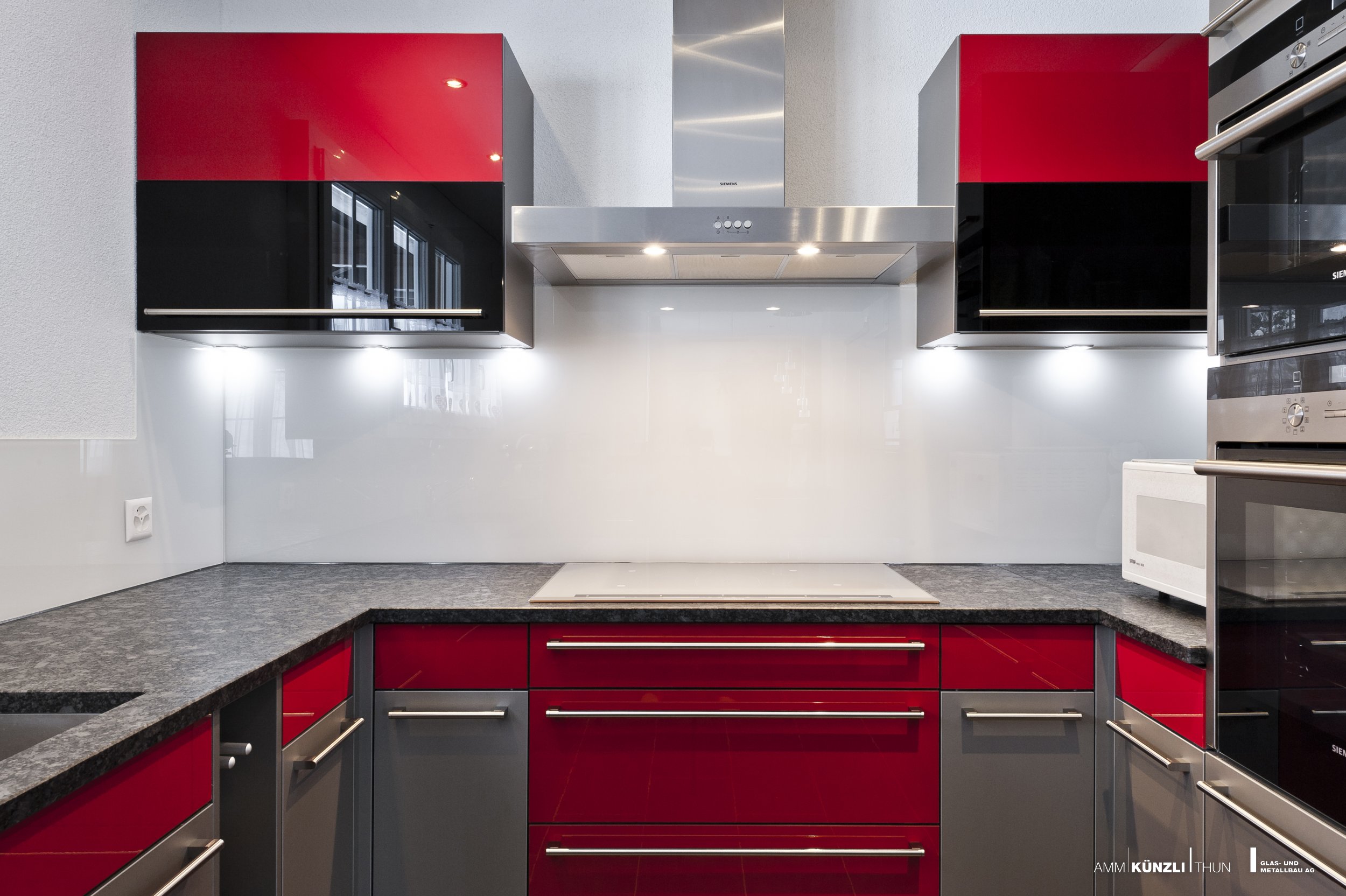 Rückwände aus Glas verleihen eine schwerelose Optik und eine zeitlos moderne Ausstrahlung.