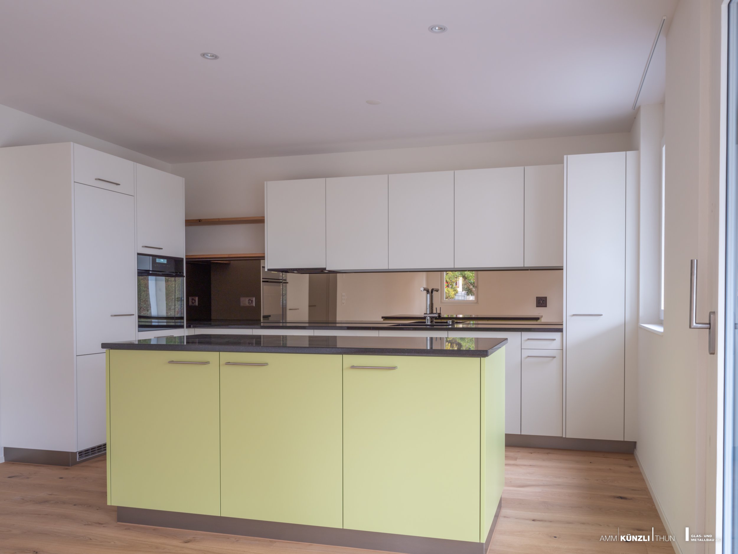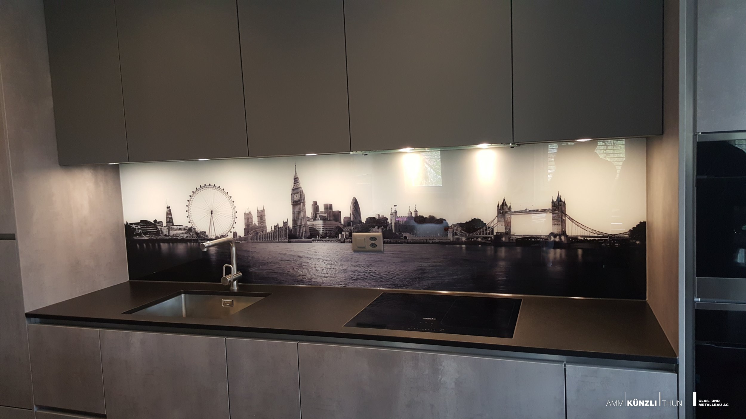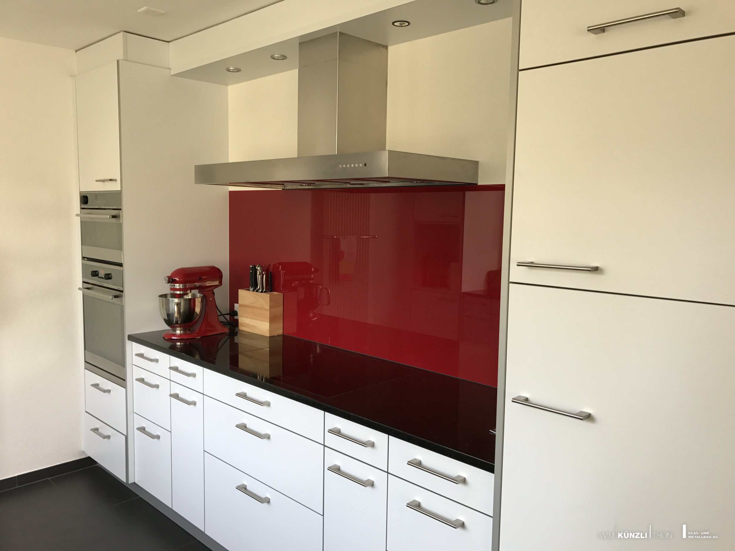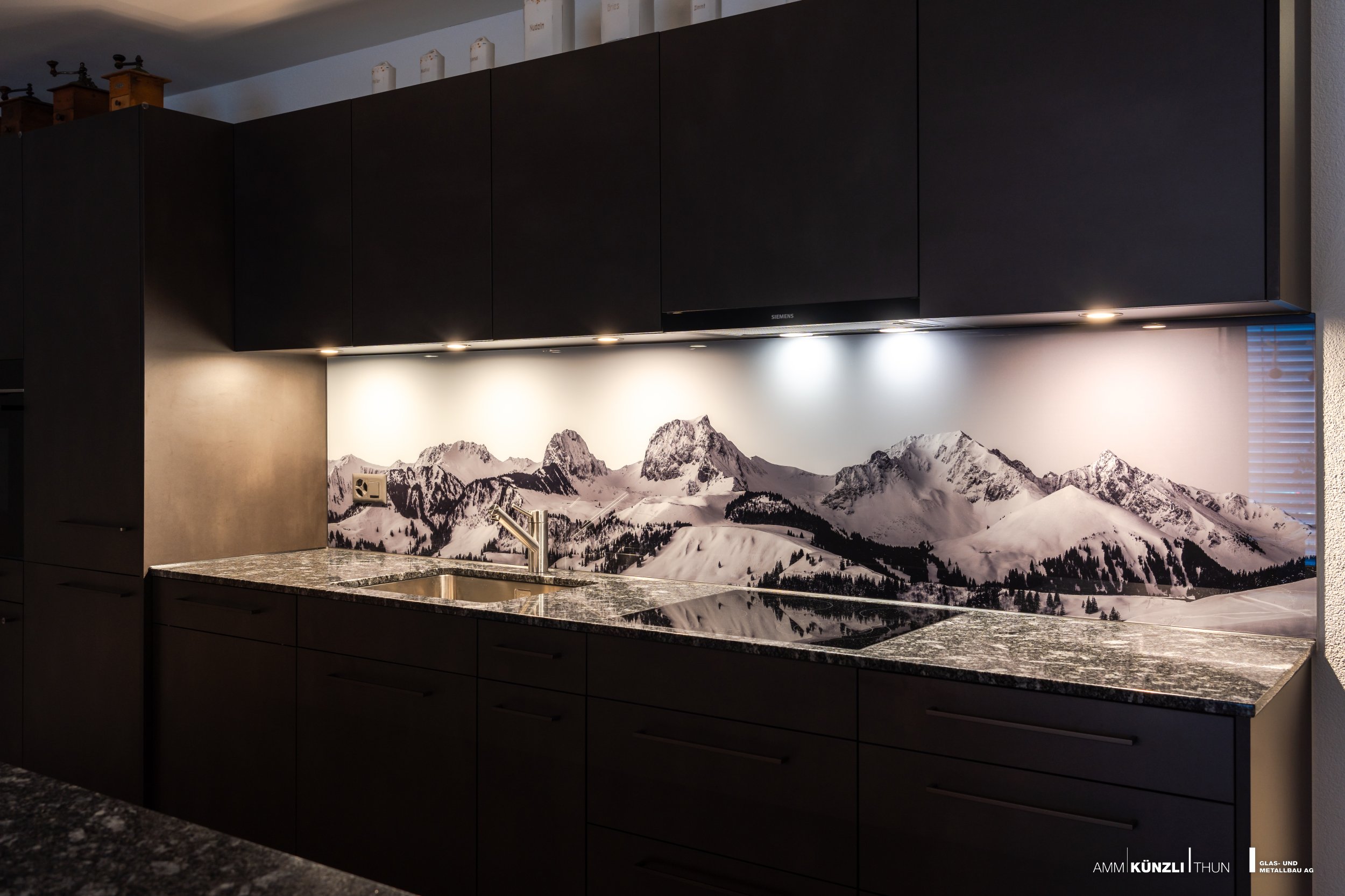 Rückwände aus Glas verleihen eine schwerelose Optik und eine zeitlos moderne Ausstrahlung.