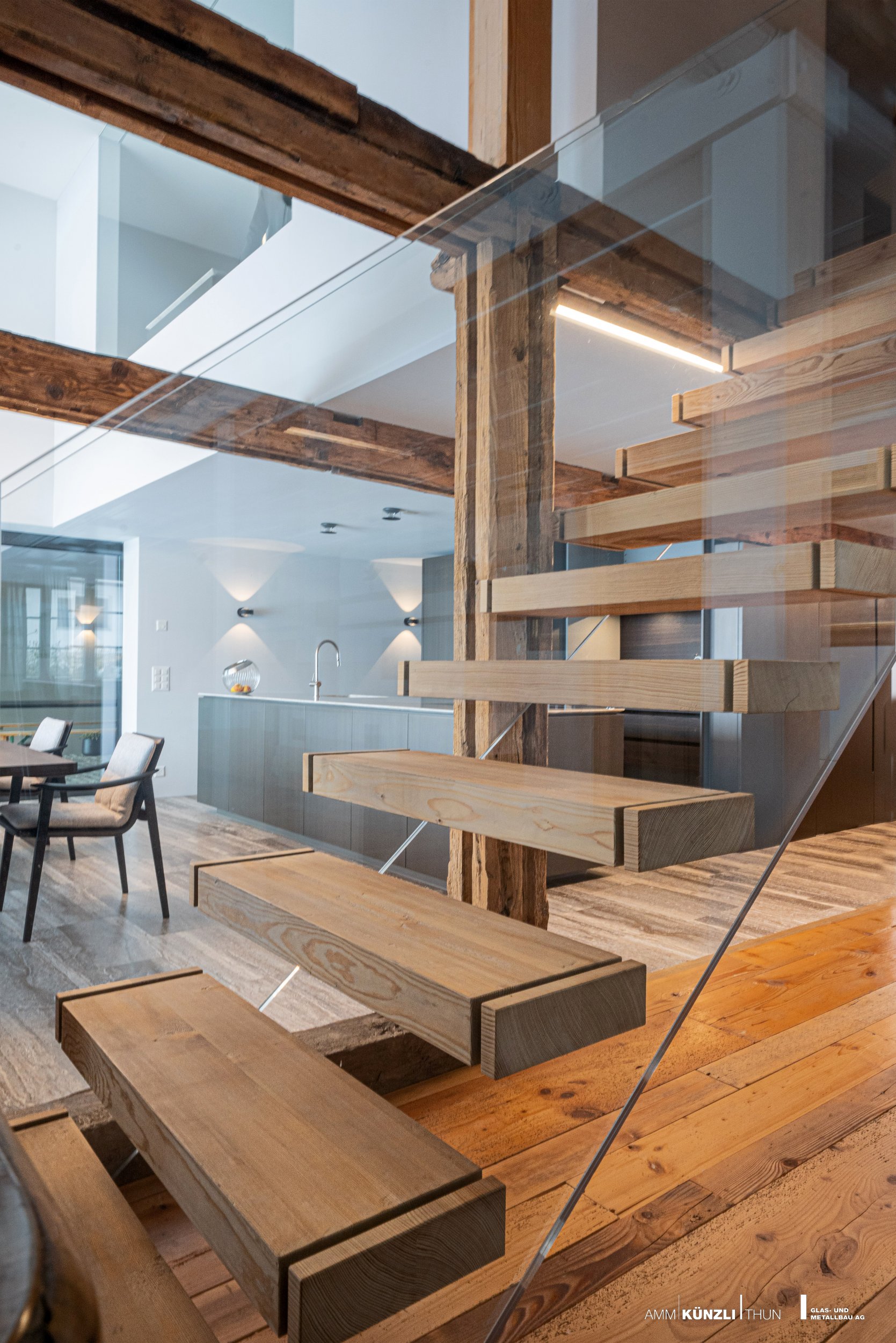 Wir helfen Ihnen die Treppe als optischen Höhepunkt in ihr Konzept einfliessen zu lassen.