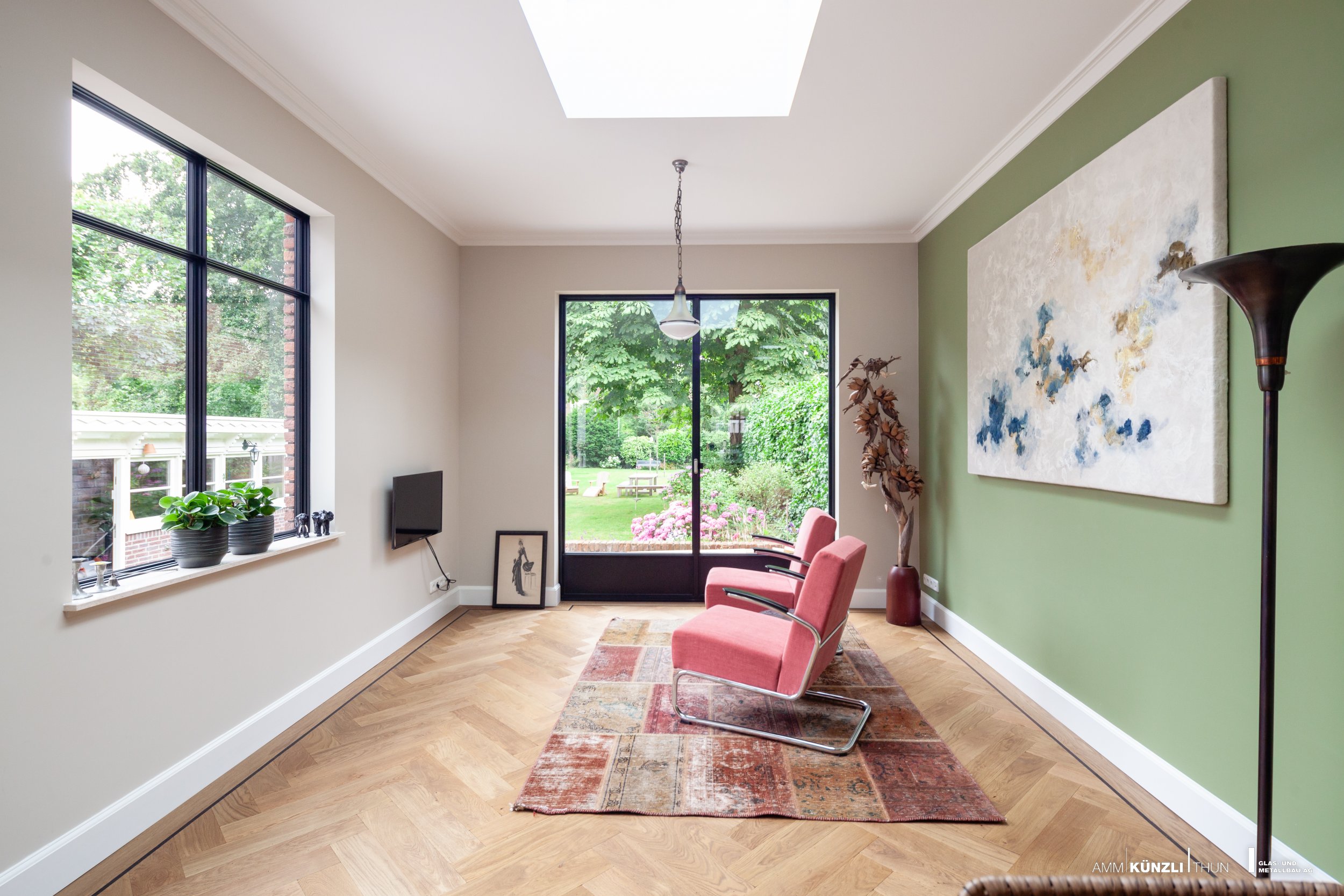 Die scharfkantigen Stahlprofile von MHB machen es möglich, ultraflache Fassaden, Fenster und Türen zu gestalten. Die Kombination von der dem Stahl eigenen Festigkeit und smartem Design gibt Architekten die Freiheit, mit grossen Verglasungsflächen zu spielen.