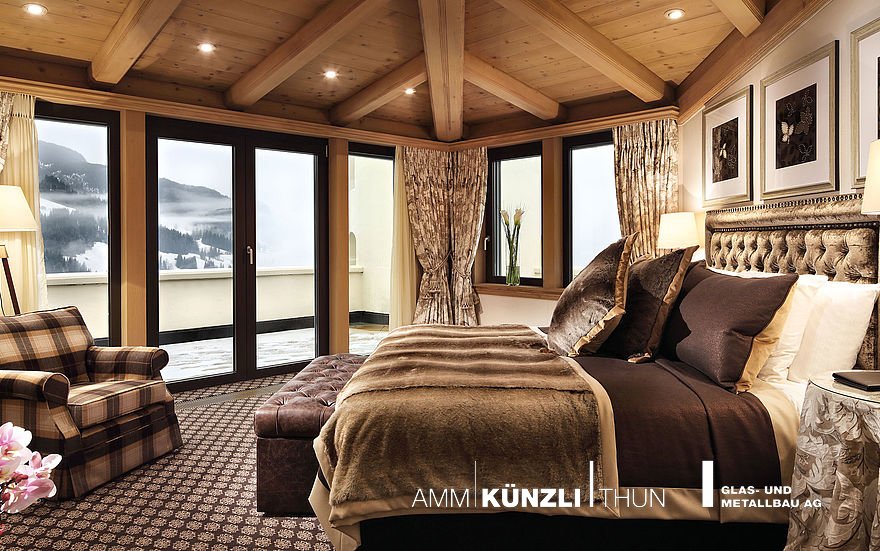 Ob spektakuläre Penthouse-Suite oder stilvoll dekorierte Einzel- und Doppelzimmer. Das Luxushotel legt grossen Wert auf alpine Eleganz und dezenten Luxus.